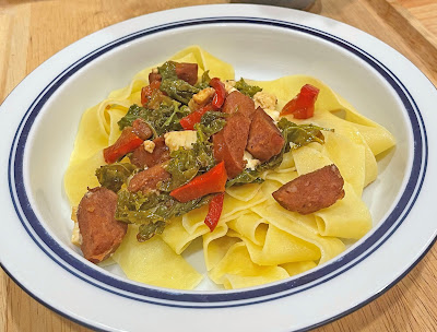 Coarsely shred ½ medium head of cabbage and beets from a 14 oz. can. Dice the vegetables: 2 carrots, 2 parsnips, 1 large, peeled potato. In a large pot sauté 1 large, chopped onion in 1 tblsp. olive oil and 1 tblsp. butter for 5 minutes, stir in 2 chopped garlic cloves and sauté for an additional minute. Add 4 cups beef bouillon, 4 oz. tomato sauce, 3 tblsp. red wine vinegar, 1 tblsp. brown sugar packed, 1 tsp. thyme, 1 bay leaf, ½ tsp. lemon pepper, 7 cloves, the shredded cabbage and beets and 1 tsp. salt. Bring to boil and cook on medium heat for 30 minutes. Stir in 8 oz. Polish sausage diced in ½ inch pieces. Heat through and serve with a dollop of sour cream and a sprinkling of snipped fresh dill. Soup flavor improves further on reheating.